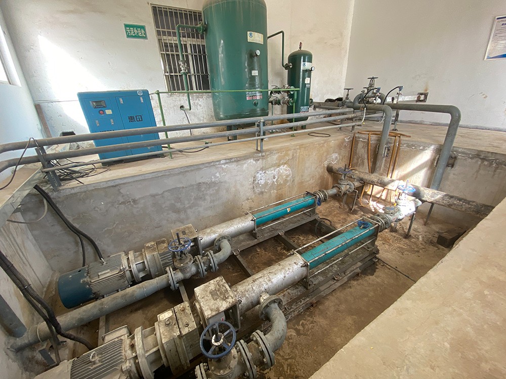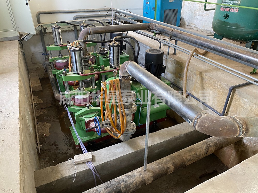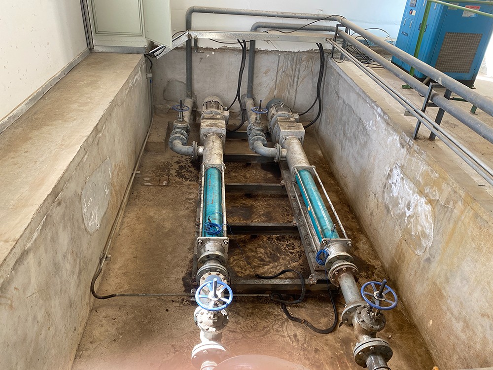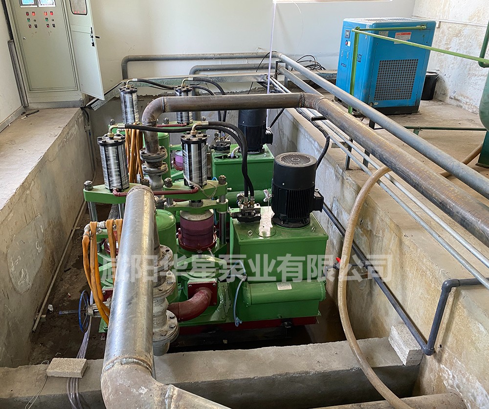 圖為 市政污水處理廠(chǎng) 以前使用的 螺桿泵 給壓濾機進(jìn)料
